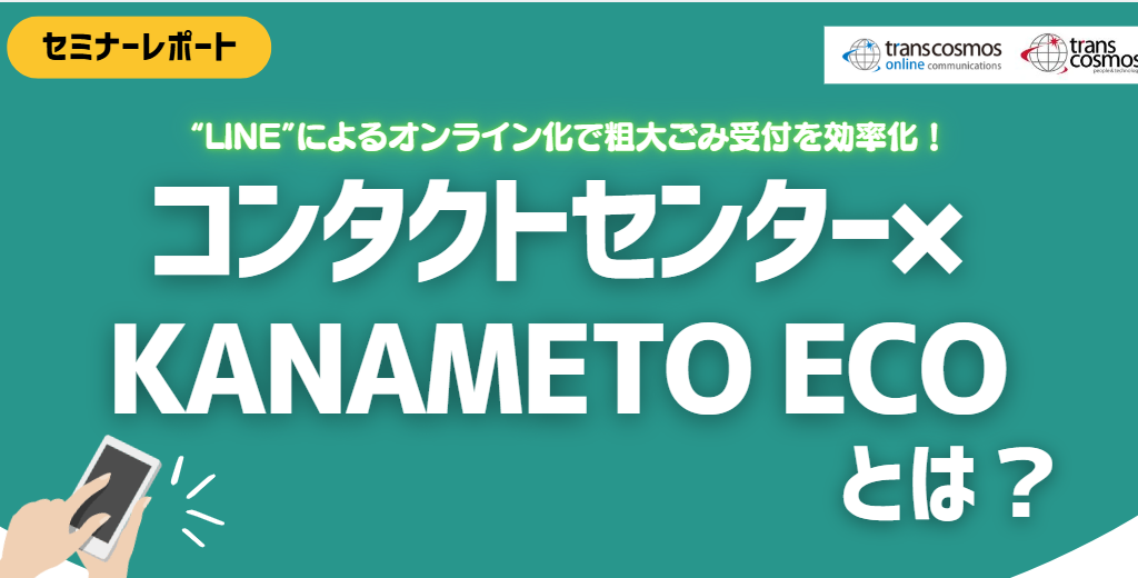 コンタクトセンター|トレンドレポート2024.11.18LINEによるオンライン化とコンタクトセンターサービスで粗大ごみ受付を効率化! 〜LINEで手軽に受付・管理できるツール「KANAMETO ECO」とは〜コンタクトセンター|トレンドレポート2024.11.18