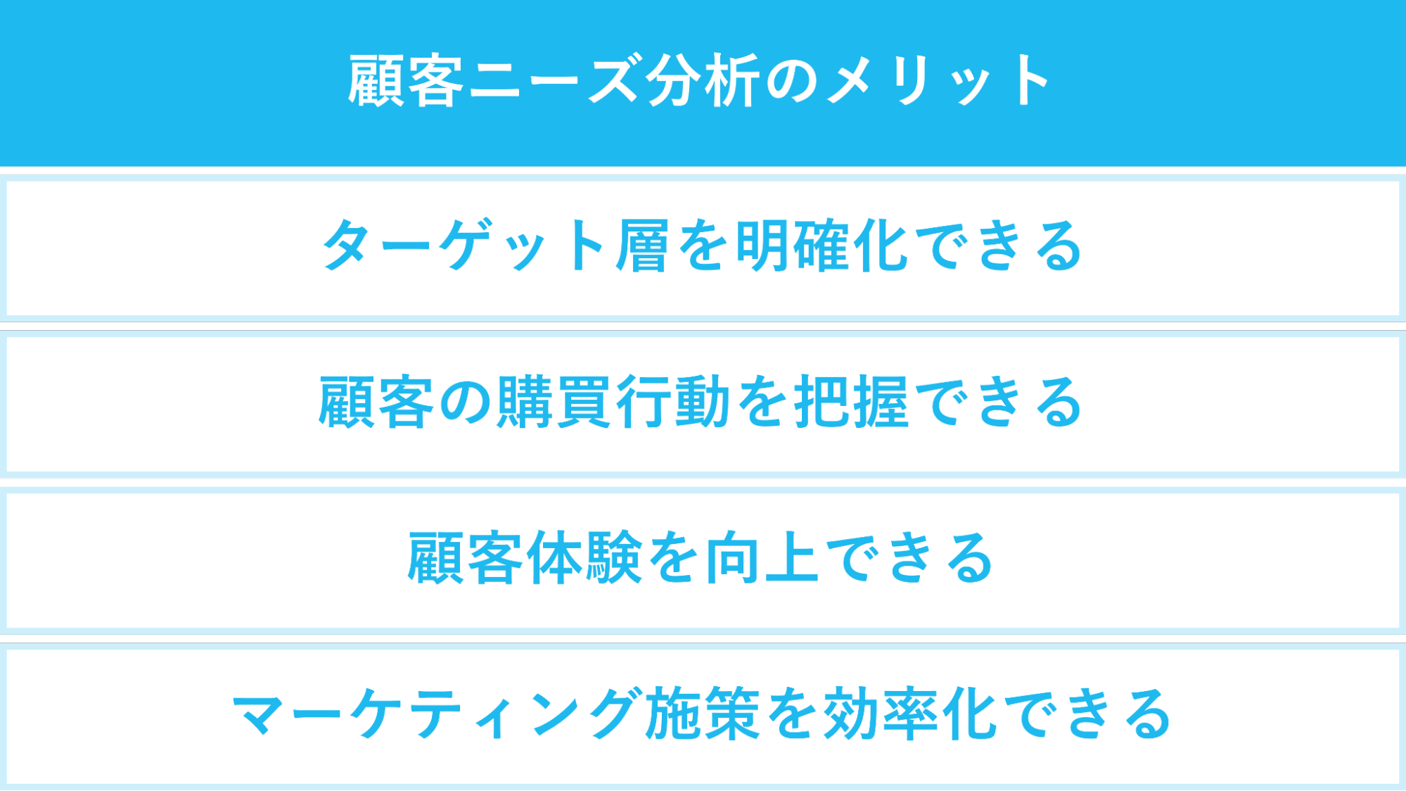 具体的には顧客ニーズ分析を行うことで、以下の4つの点がメリットとして挙げられます。