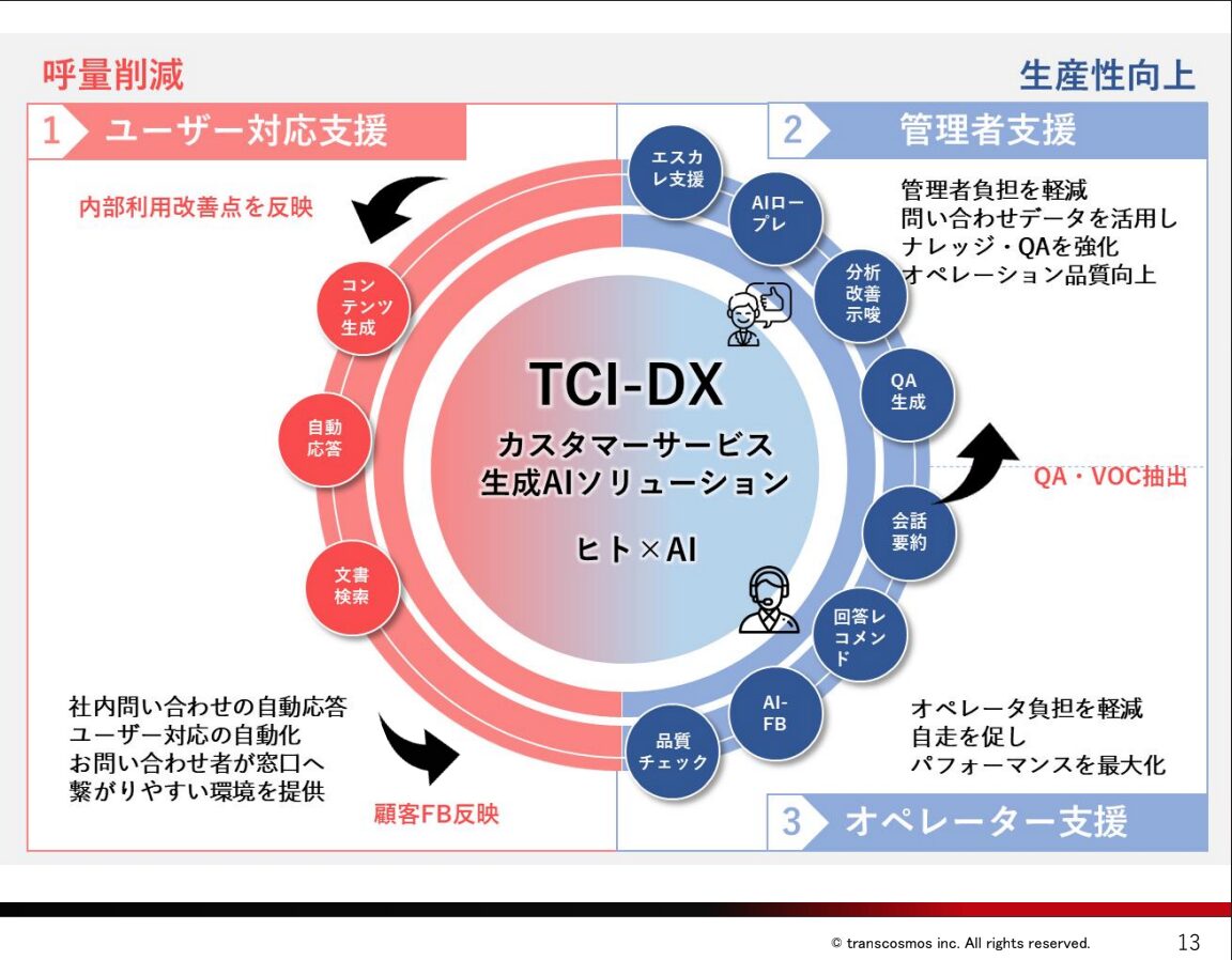 まず1点目は、ユーザー対応の支援です。先ほどベイン・アンド・カンパニー様のお話の中にも「生成AIの導入は、まず内部改善・内部利用からが多い」というお話がありました。