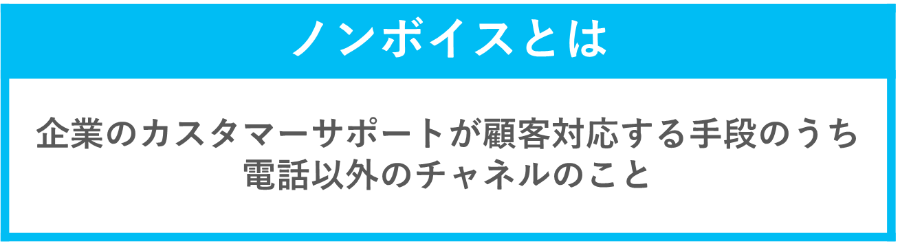 ノンボイス(non-voice)とは、その言葉の通り、企業が顧客対応をする手段のうち、“電話”以外のチャネルを指します。