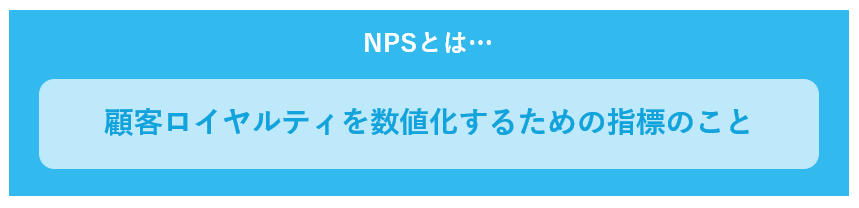 「NPS」とは「Net Promoter Score(ネット・プロモーター・スコア)」の略で、「顧客ロイヤルティ」を数値化するための指標です。